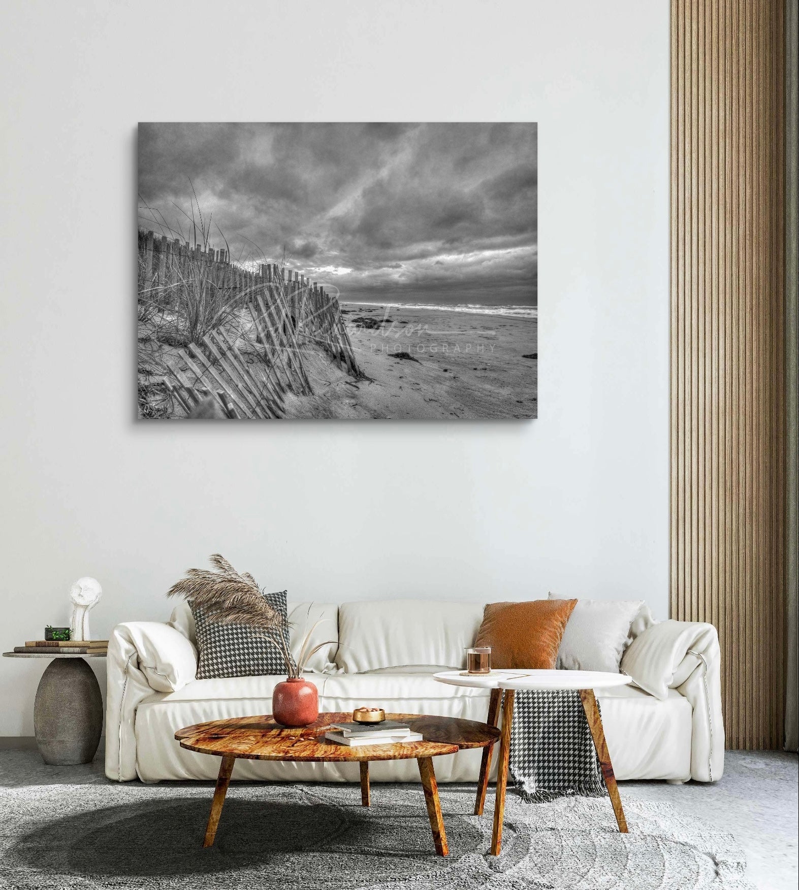 Rendered in timeless black and white, Stillness After The Storm reflects that fleeting calm when the sea softens and silence returns.